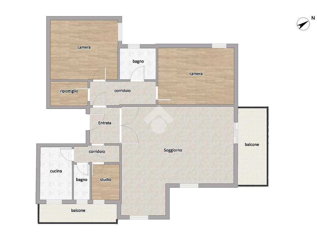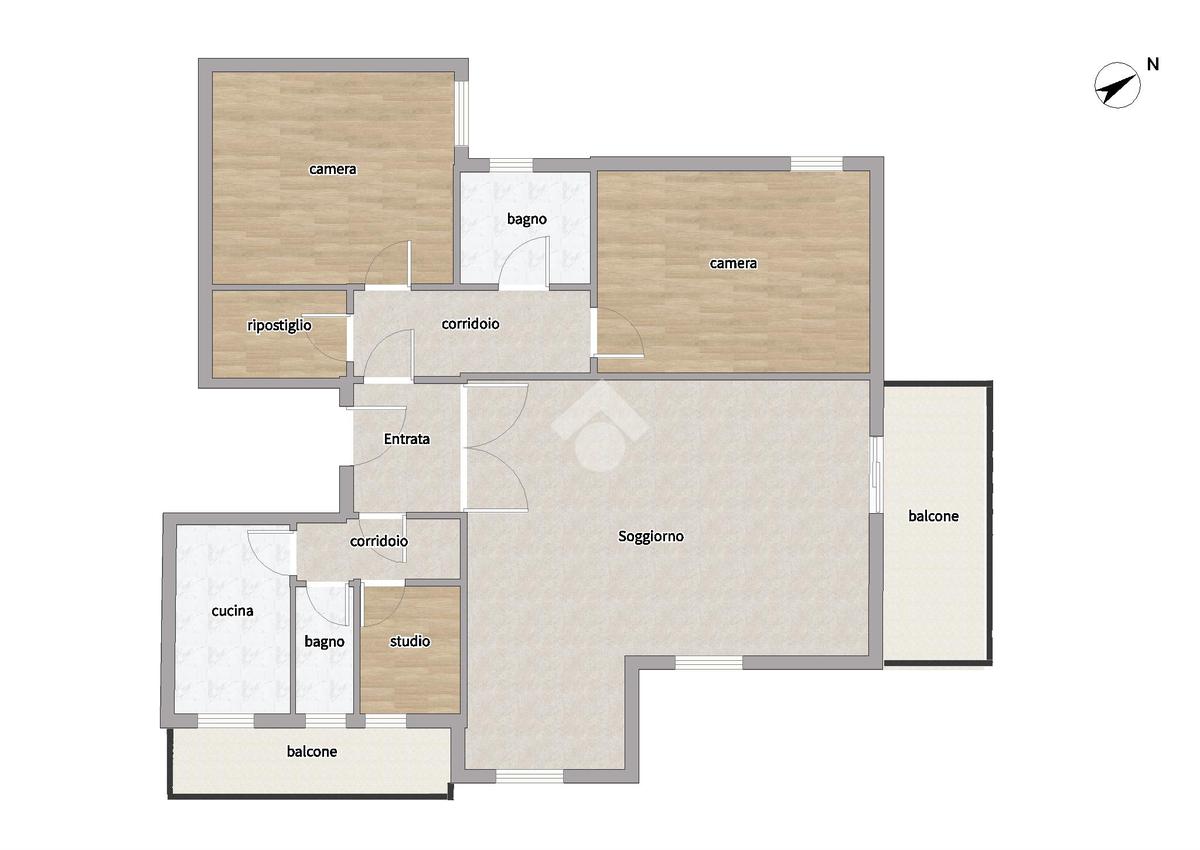 L'appartamento si distingue per la sua luminosità e gli ambienti ampi. L’ingresso conduce a un grande salone doppio, ampio e luminoso. La zona notte è composta da due camere da letto matrimoniali, uno studio finestrato, una cucina, un ripostiglio e due bagni finestrati.